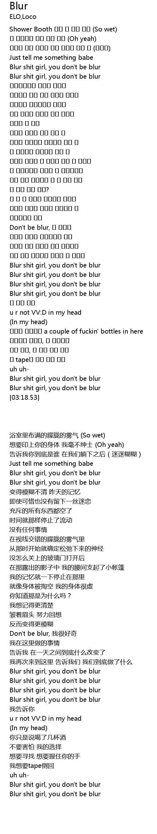 | [00:37.46] | Blur shit girl, you don' t be blur |