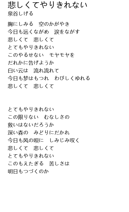 | Song | 悲しくてやりきれない |