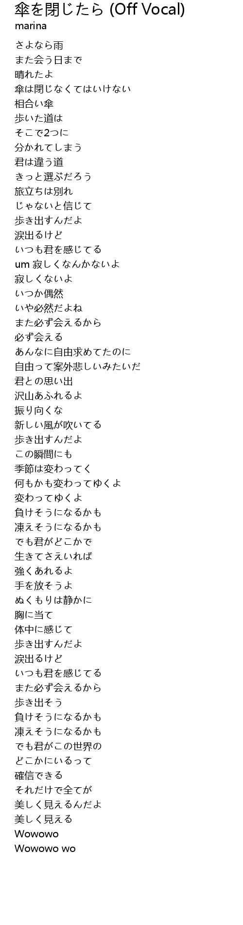 傘を閉じたら (Off Vocal)