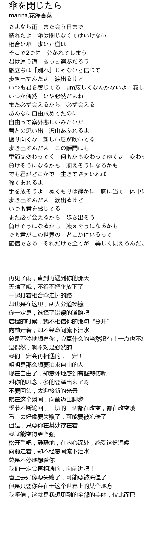 | [00:24] | 晴れたよ 傘は閉じなくてはいけない |