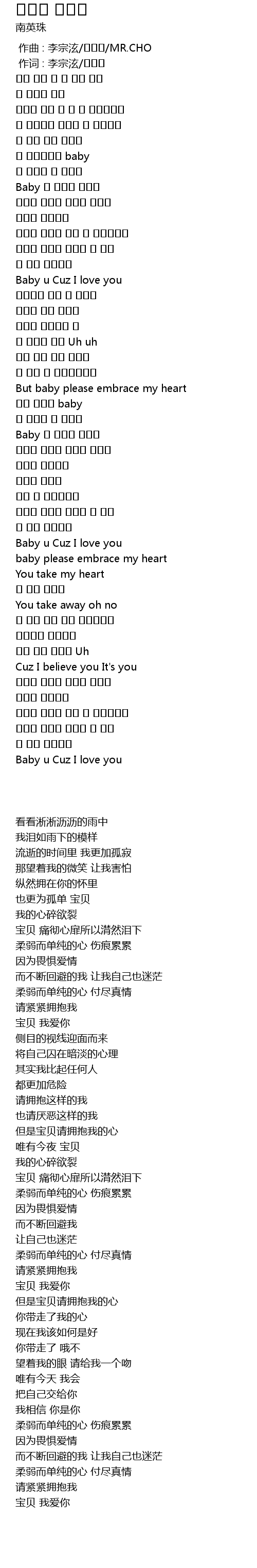 | [02:09.770] | Baby u Cuz I love you |