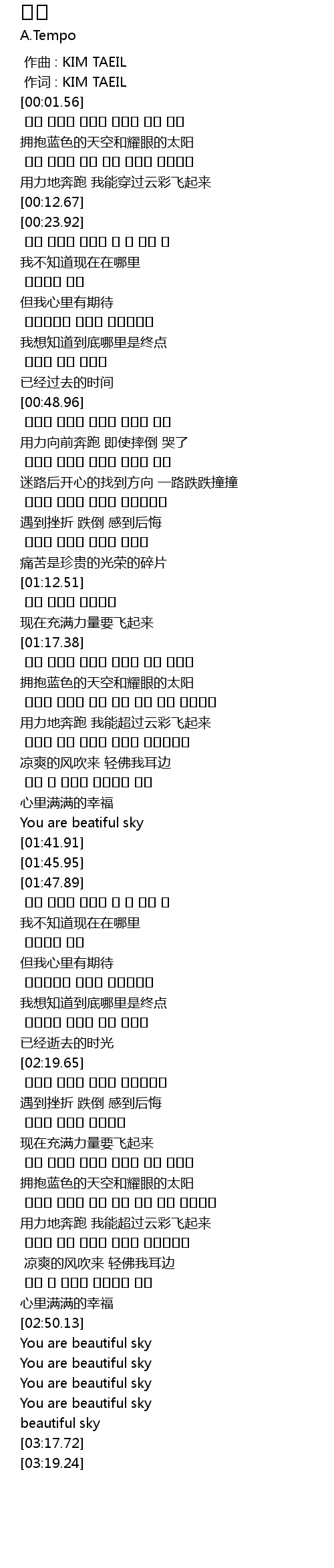 | [01:39.66] | You are beatiful sky |