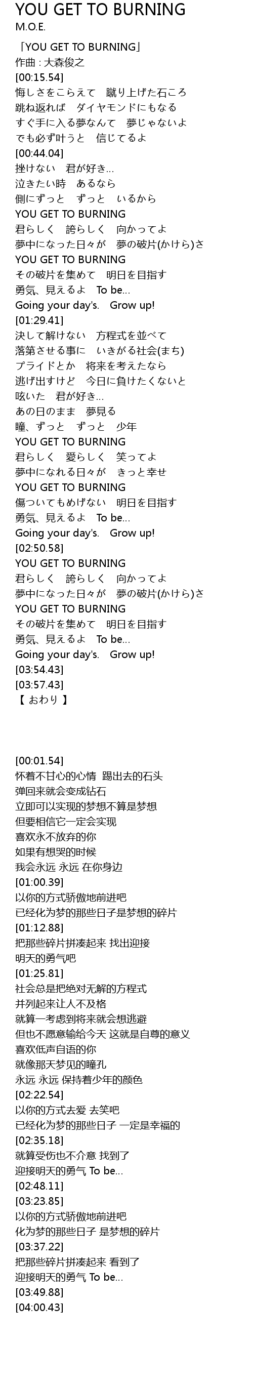| [00:01.54] | 「YOU GET TO BURNING」 |