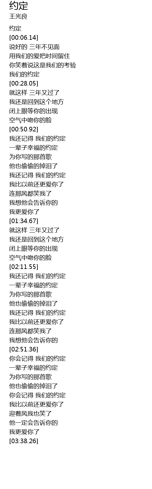 | [03:11.95] | 你会记得 我们的约定 |