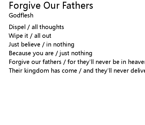 | Forgive our fathers / for they'll never be in heaven | |