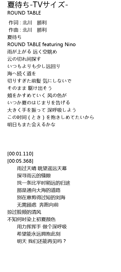 | [00:56.620] | いつか夏のはじまりを告げる |