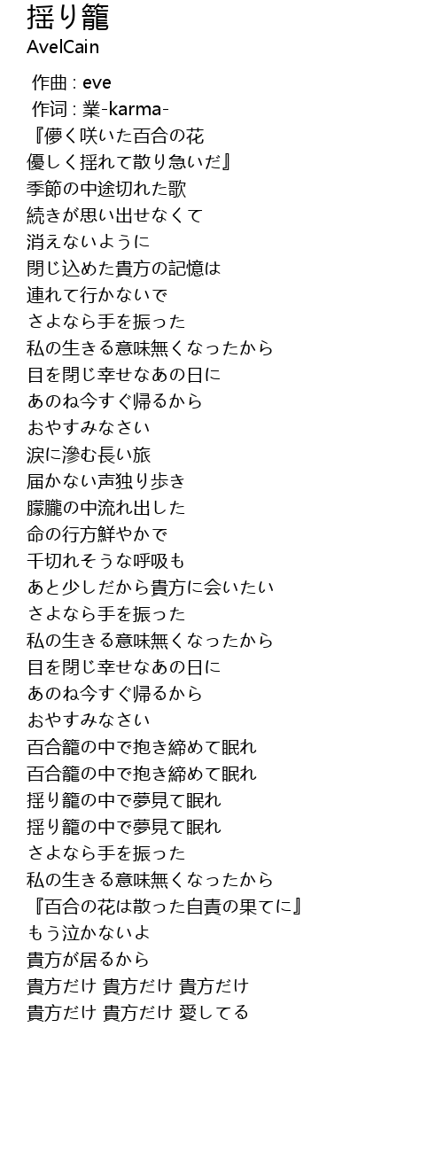 揺り籠 yao long Lyrics