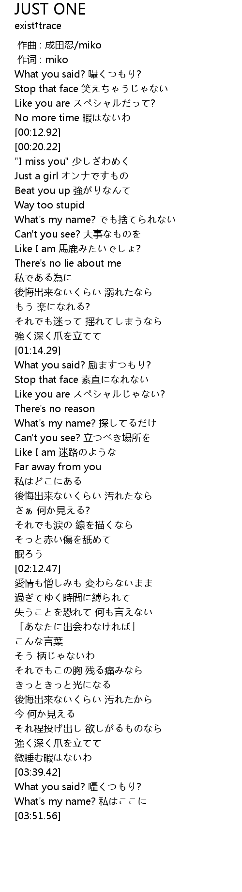 | [00:38.81] | What's my name? でも捨てられない |
