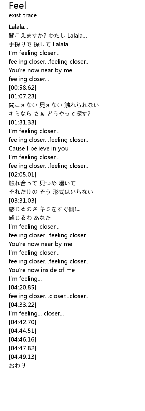 | [01:14.75] | 聞こえない 見えない 触れられない |