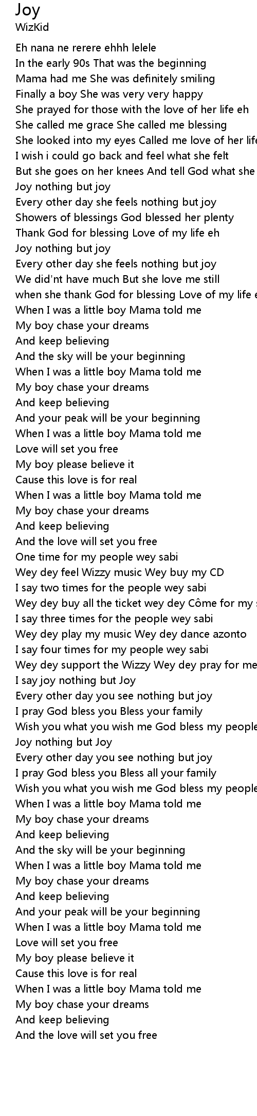 | [02:05.10] | Wey dey support the Wizzy Wey dey pray for me |