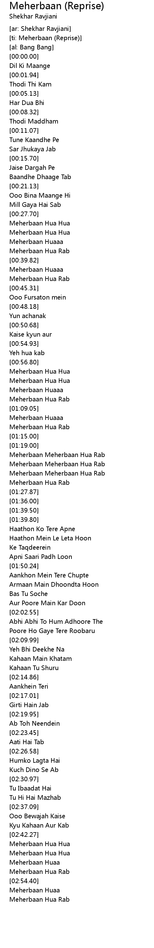 [ti: Meherbaan (Reprise)] |