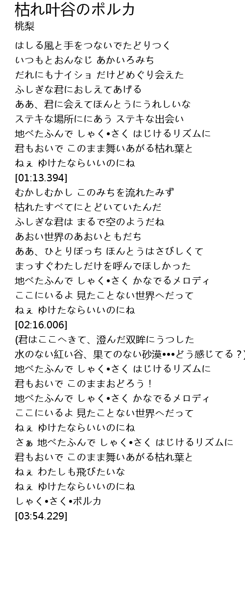 | [01:56.217] | 地べたふんで しゃく•さく かなでるメロディ |