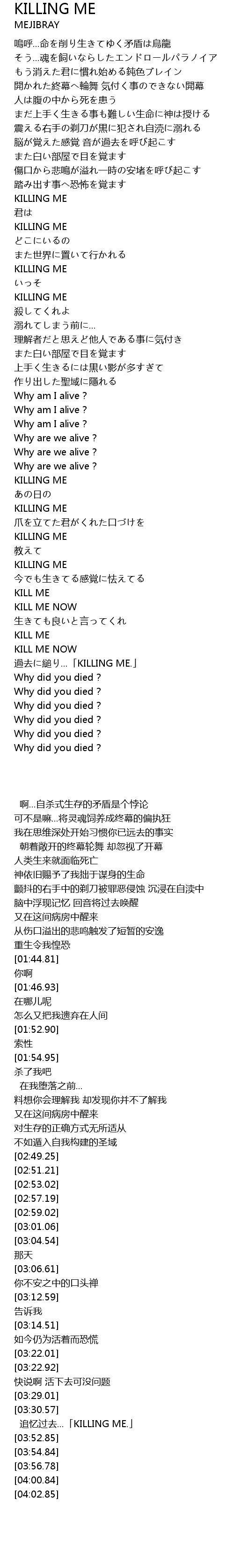 | [03:22.010] | KILL ME |
