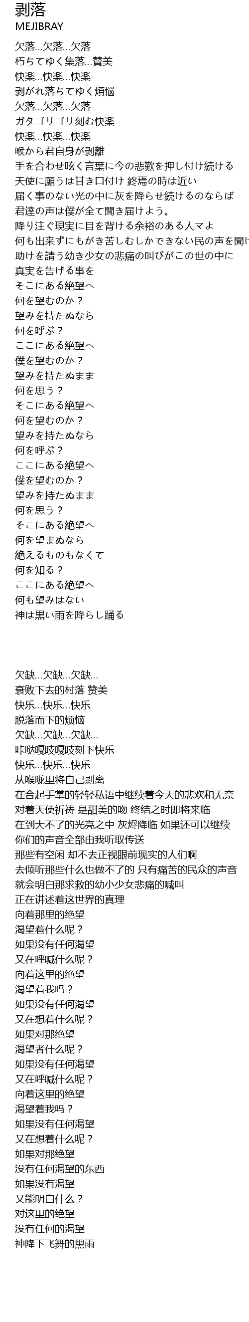 | [00:44.80] | 剥がれ落ちてゆく煩悩 |