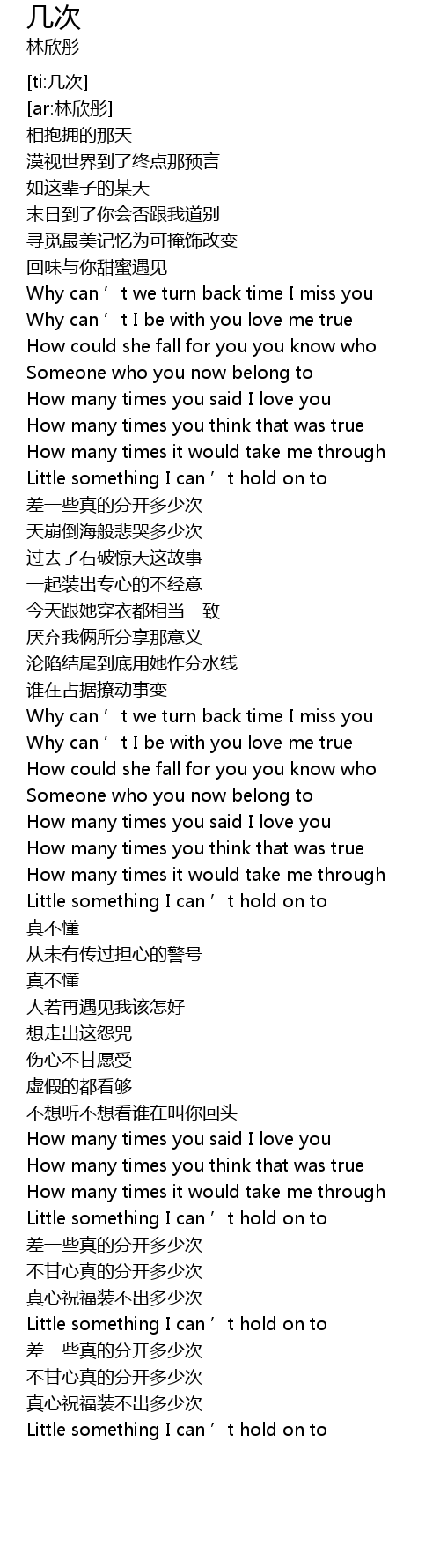 | [03:00.934] | bu gan xin zhen de fen kai duo shao ci |