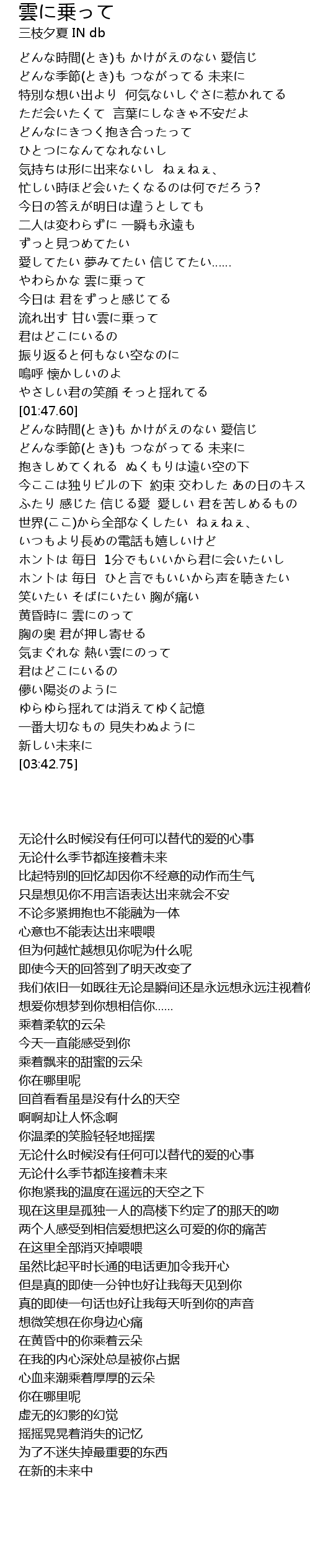 | [02:42.51] | 黄昏時に 雲にのって |