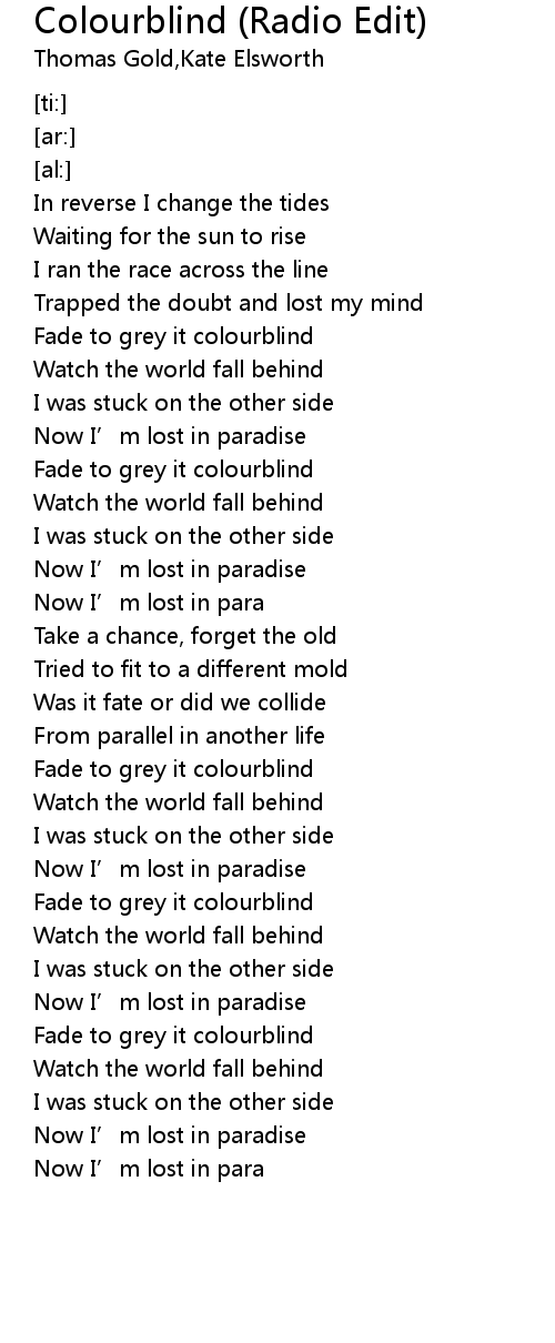 | [01:12.26] | Fade to grey it colourblind |