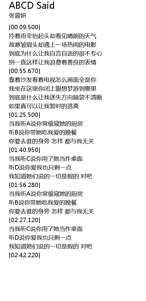 | [02:32.580] | 听D说你爱我也只剩一点 |