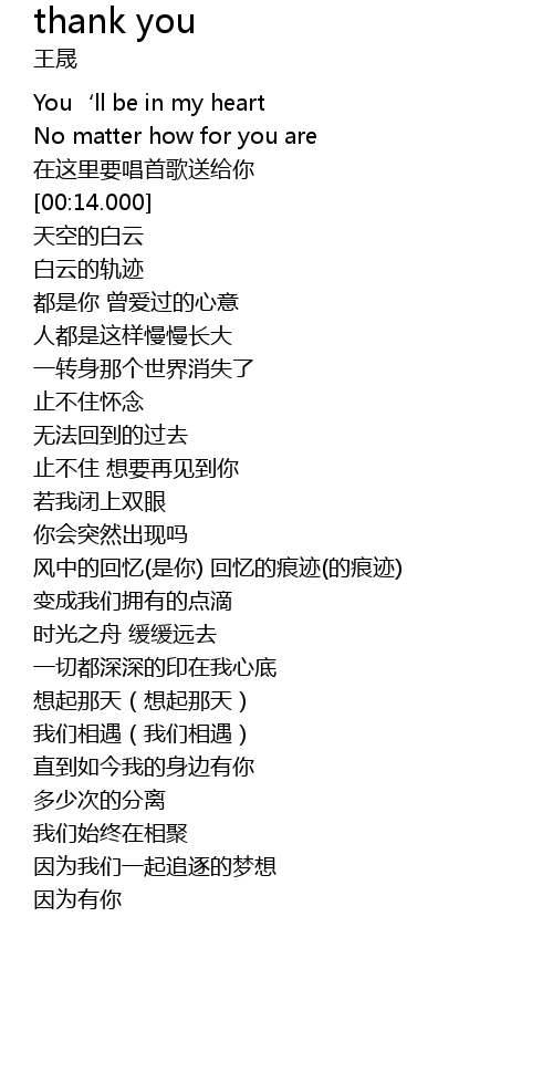 | [00:00.000] | You‘ll be in my heart |