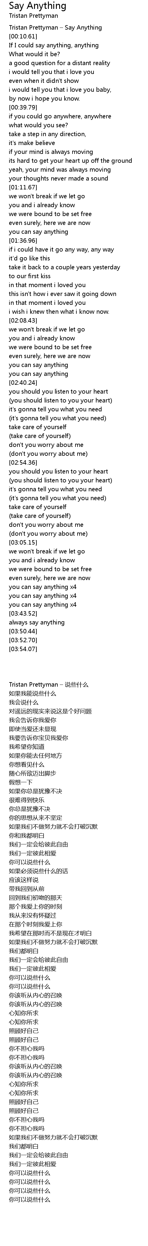 | [00:00.00] | Tristan Prettyman – Say Anything |
