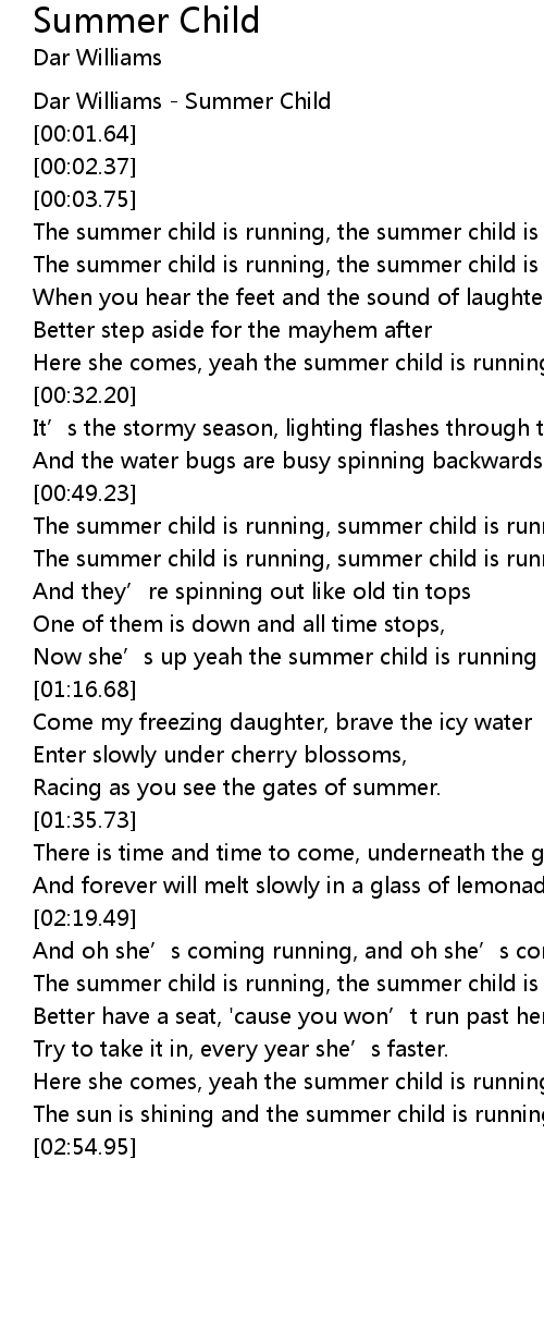 | [00:56.98] | The summer child is running, summer child is running again |