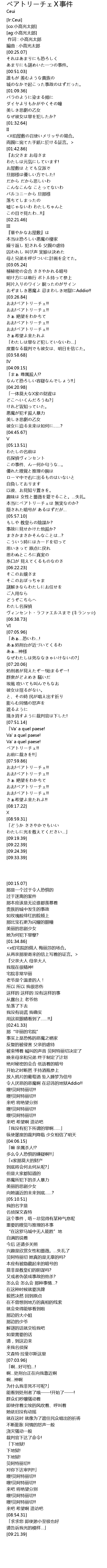 | [04:17.47] | なんて恐ろしい容疑なんでしょう!!」 |