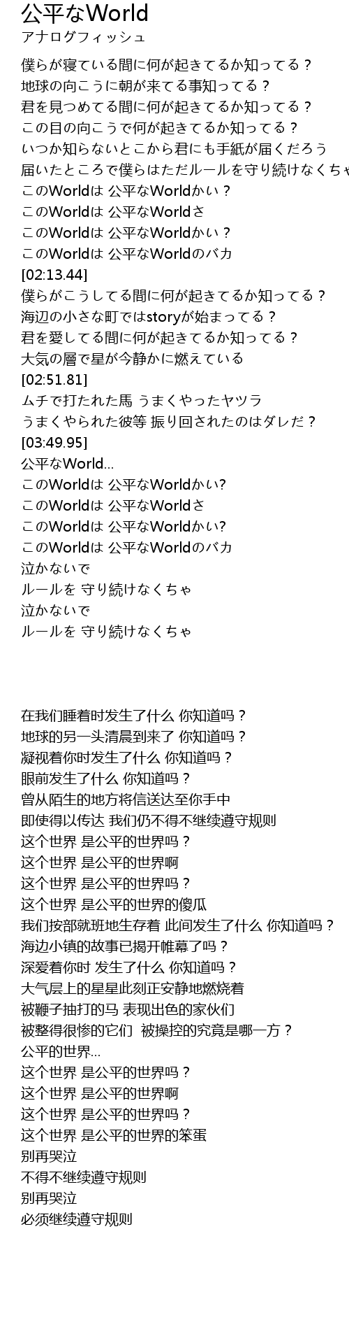 | [02:02.52] | このWorldは 公平なWorldのバカ |