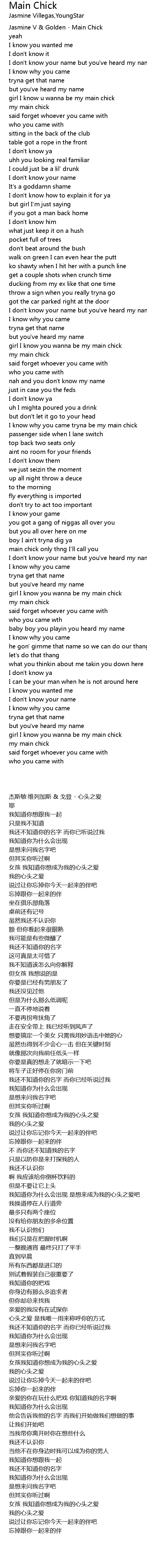 girl I know you wanna be my main chick |