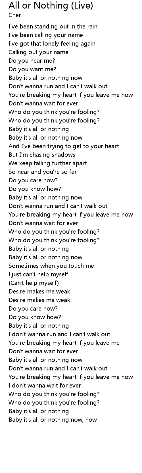 Baby it's all or nothing |