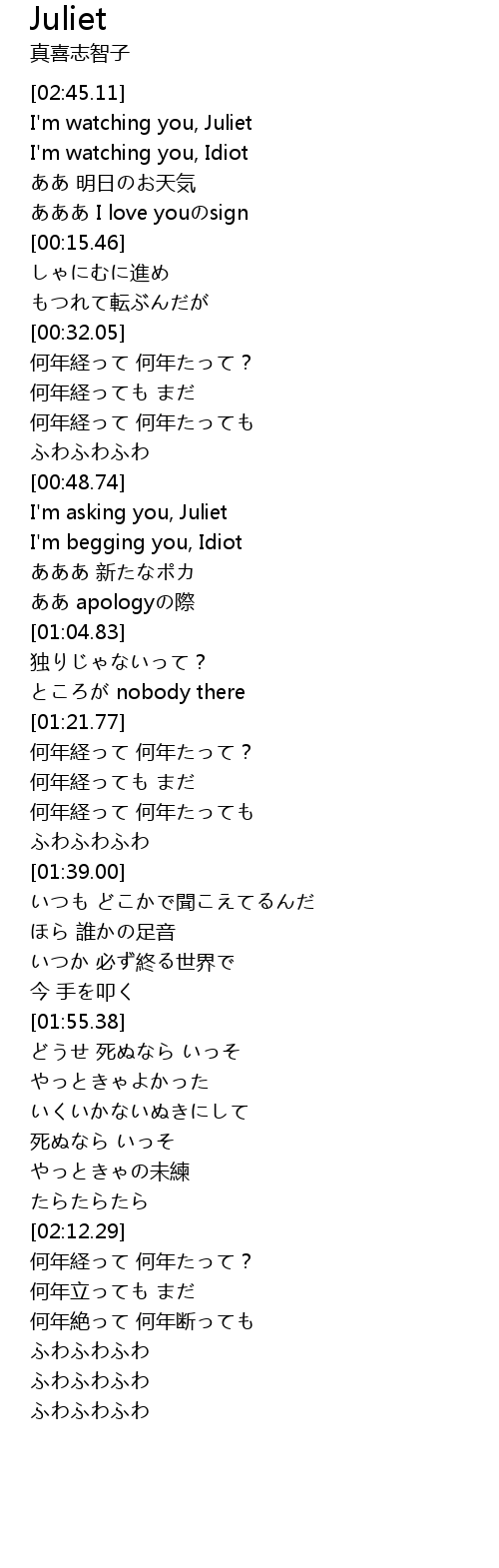 | [00:00.00] | I'm watching you, Juliet |