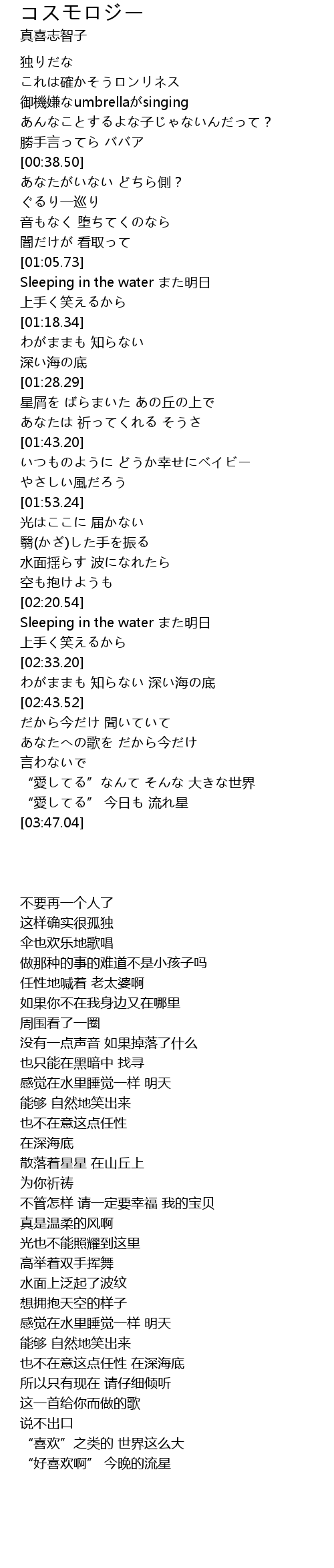| [03:34.74] | “愛してる”なんて そんな 大きな世界 |