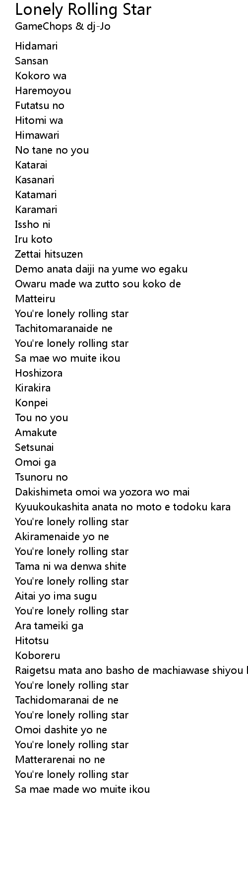 You're lonely rolling star |