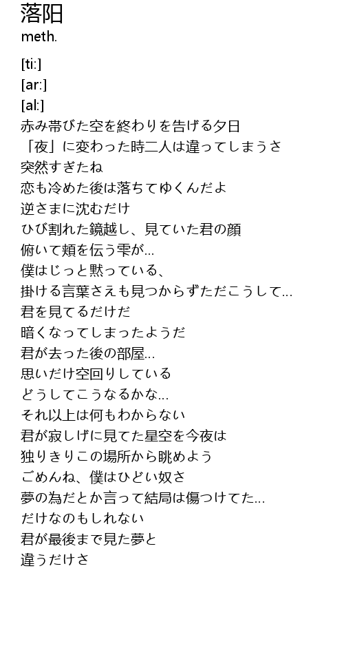 | [00:36.97] | 赤み帯びた空を終わりを告げる夕日 |