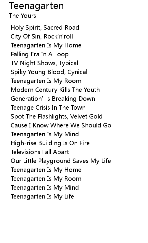 | Song | Teenagarten |