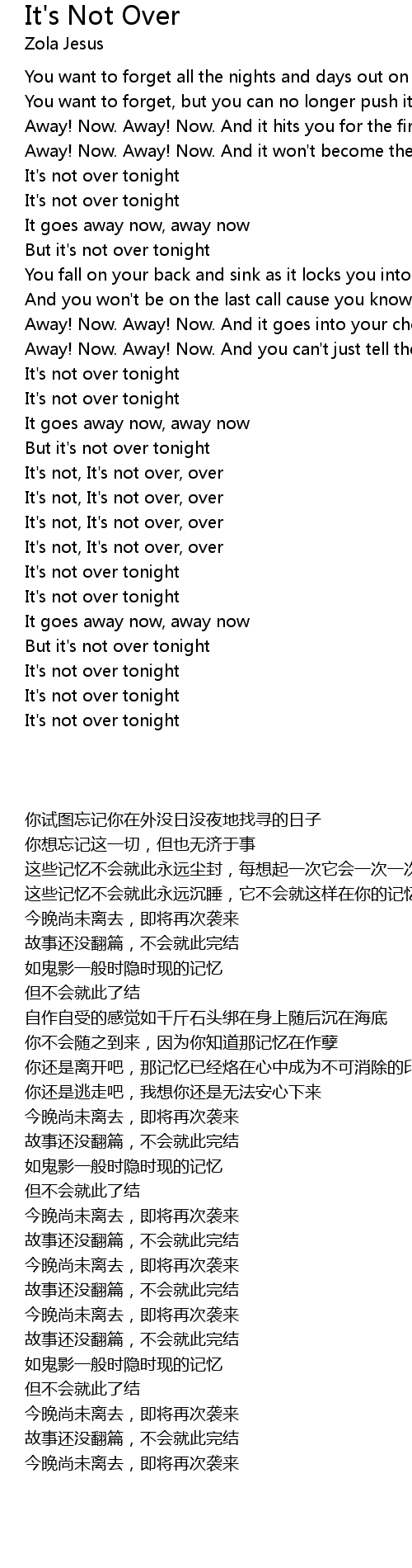 It's not, It's not over, over |