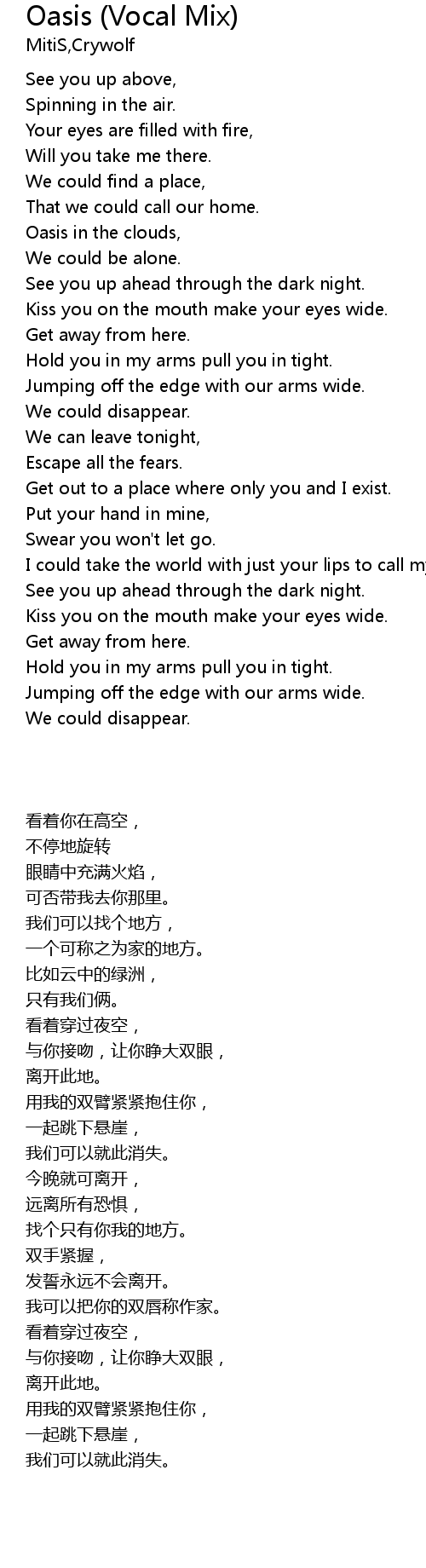 | [00:49.33] | Oasis in the clouds, |