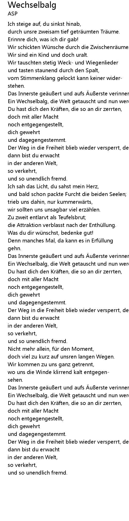 | Song | Wechselbalg |