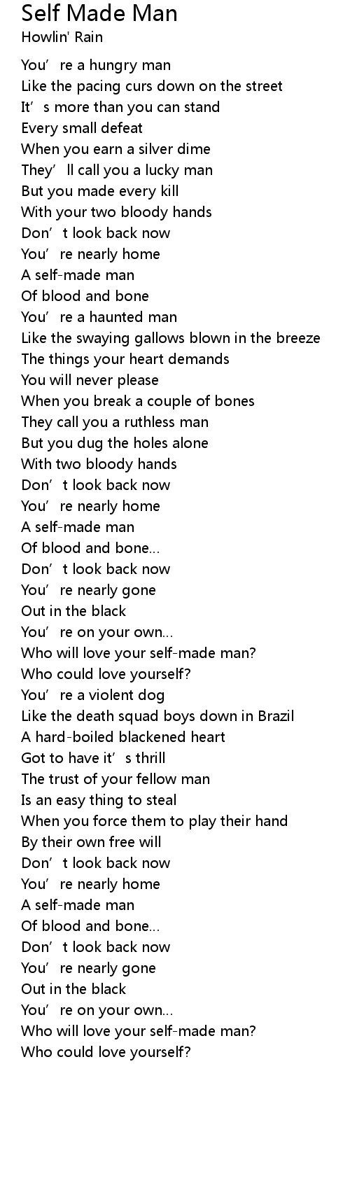| Who will love your selfmade man? | |