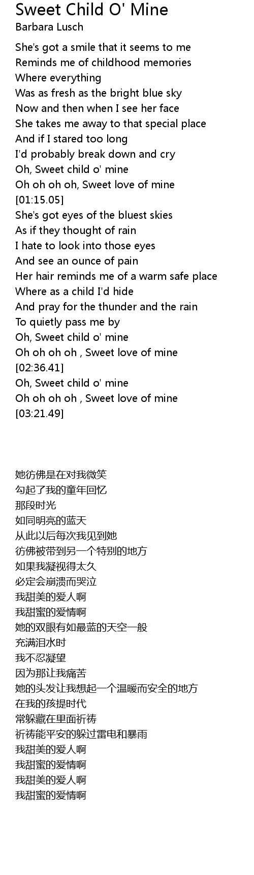 Oh, Sweet child o' mine |