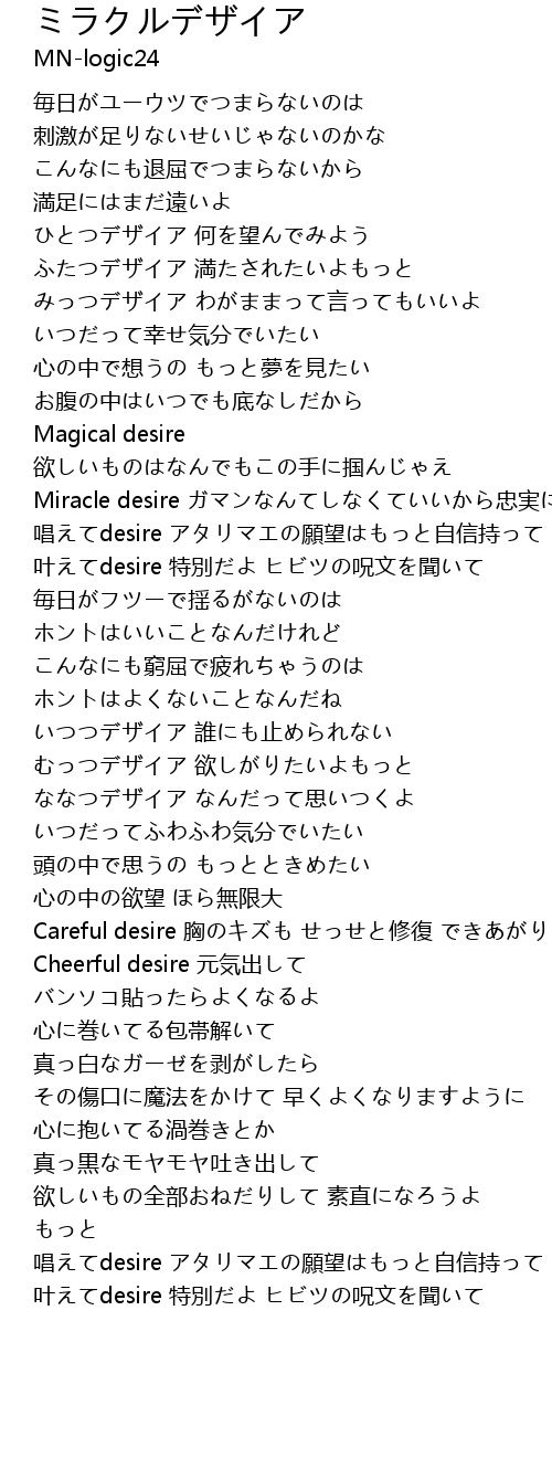 | [01:06.490] | Miracle desire ガマンなんてしなくていいから忠実に |