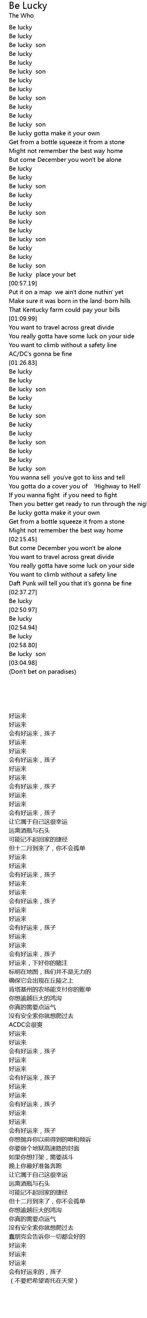 | [02:57.35] | Be lucky |