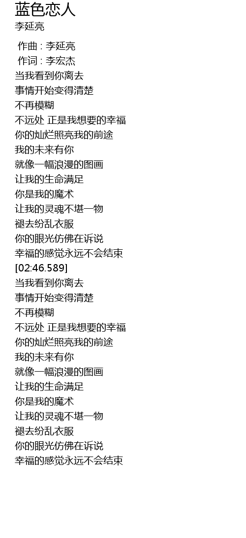 | [02:30.698] | 不远处 正是我想要的幸福 |