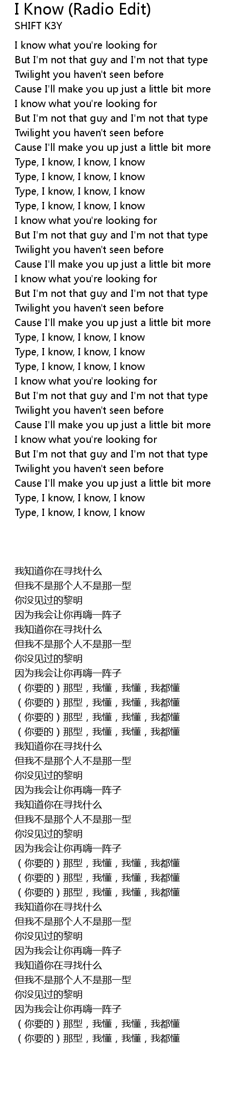 Type, I know, I know, I know |