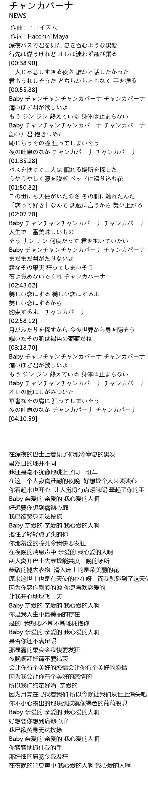 | [00:56.10] | Baby チャンチャンチャンカパーナ チャンカパーナ |