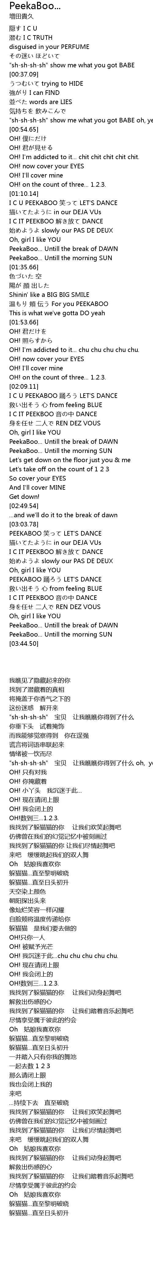 | [03:20.91] | PEEKABOO yǒng LET' S DANCE |