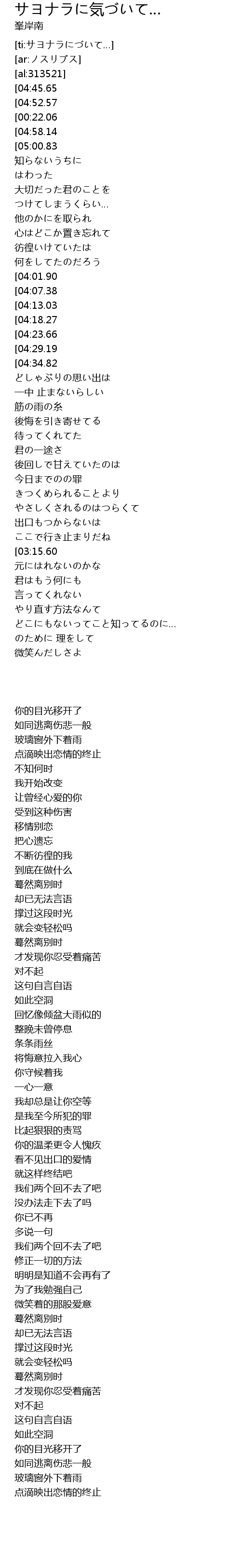 | [01:10.21][04:07.38] | 言をなくしてしまう |