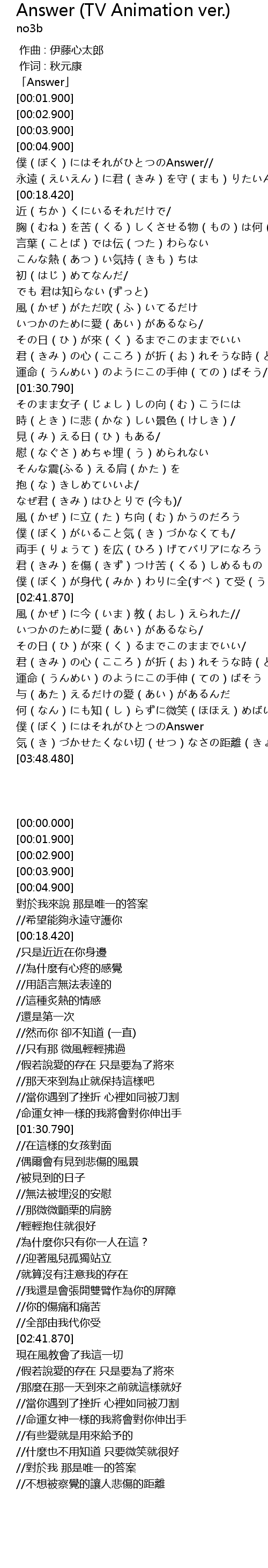 | [03:35.800] | 僕(ぼく)にはそれがひとつのAnswer |