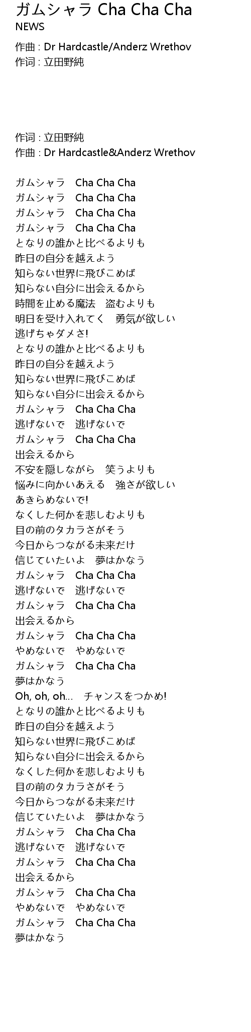 | [02:06.48] | ガムシャラ Cha Cha Cha |