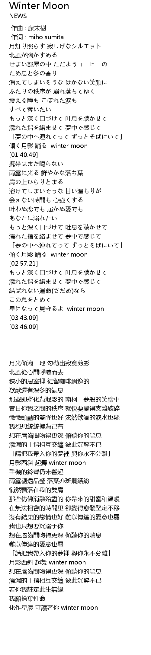 | [03:37.87] | 星になって見守るよ winter moon |