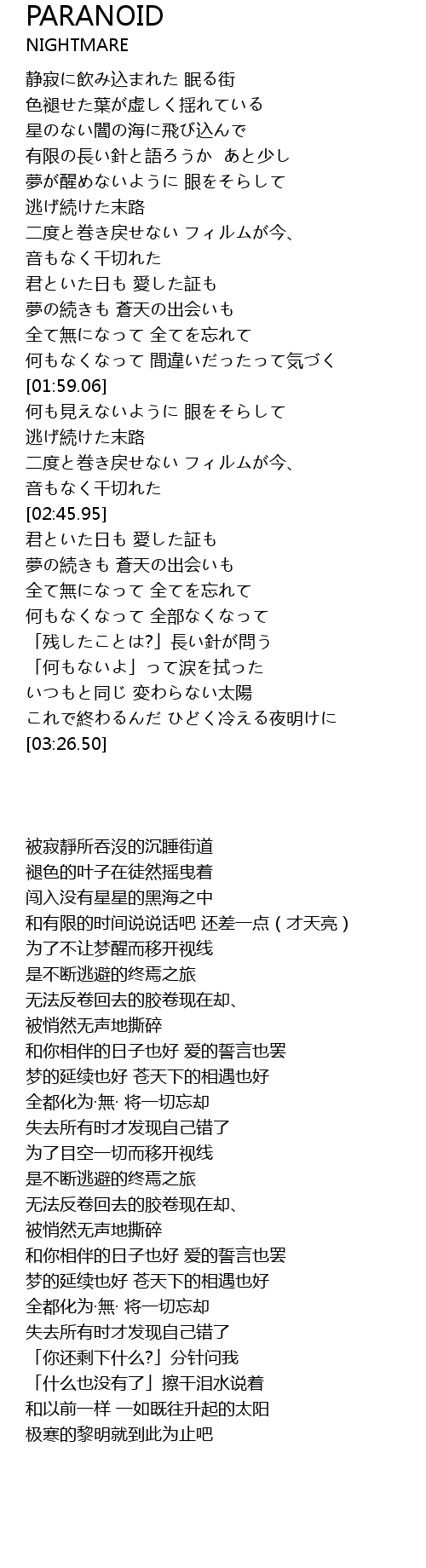 | [03:00.03] | 何もなくなって 全部なくなって |